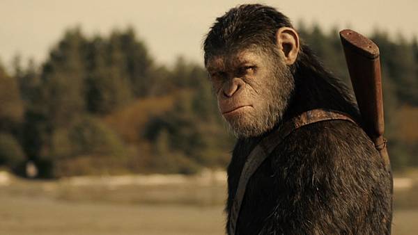 被擄的猩猩們,再次見到凱薩,並沒有表示什麼多大的情緒起伏,只有一臉厭世的看著他。