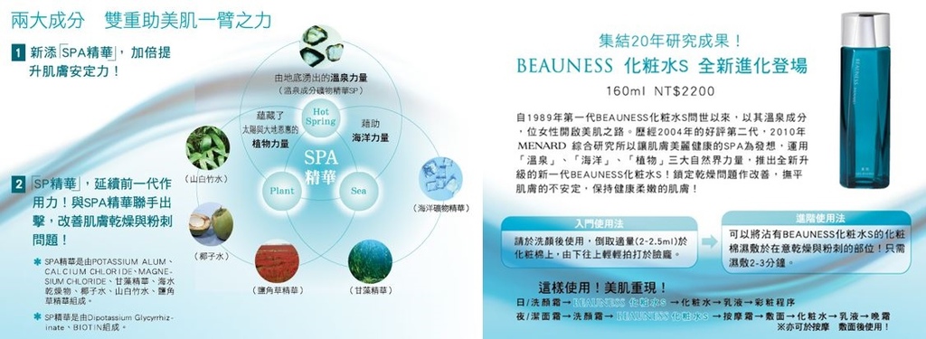 這回 ButyBox 內的是運用了溫泉、植物、海洋三種自然元素,製作出的「BEAUNESS化粧水S」,