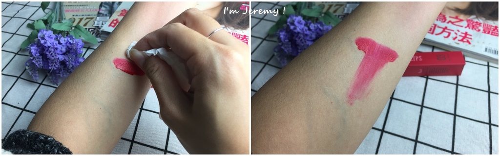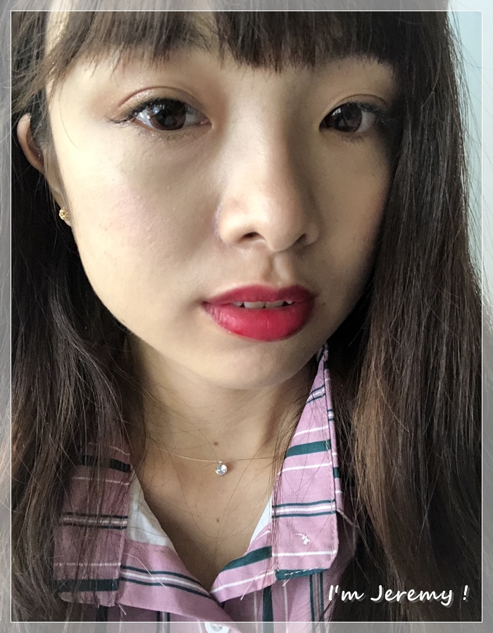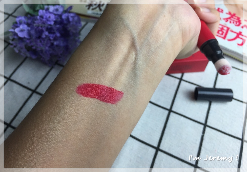 可以看到口紅明顯飽和、顯色外,也帶有點半霧面的感覺,