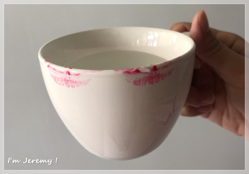 但神奇的是,我的唇在碰過2次杯子後,上頭的顏色依然明顯地在跟各位 Say Holle 唷!