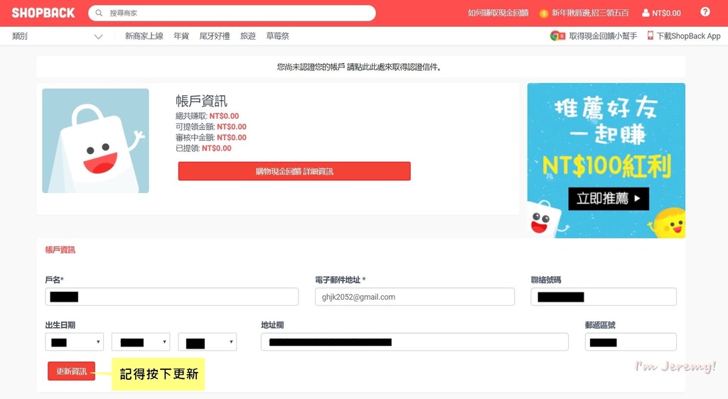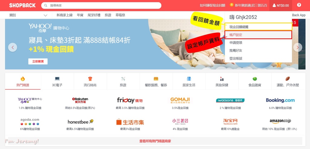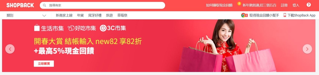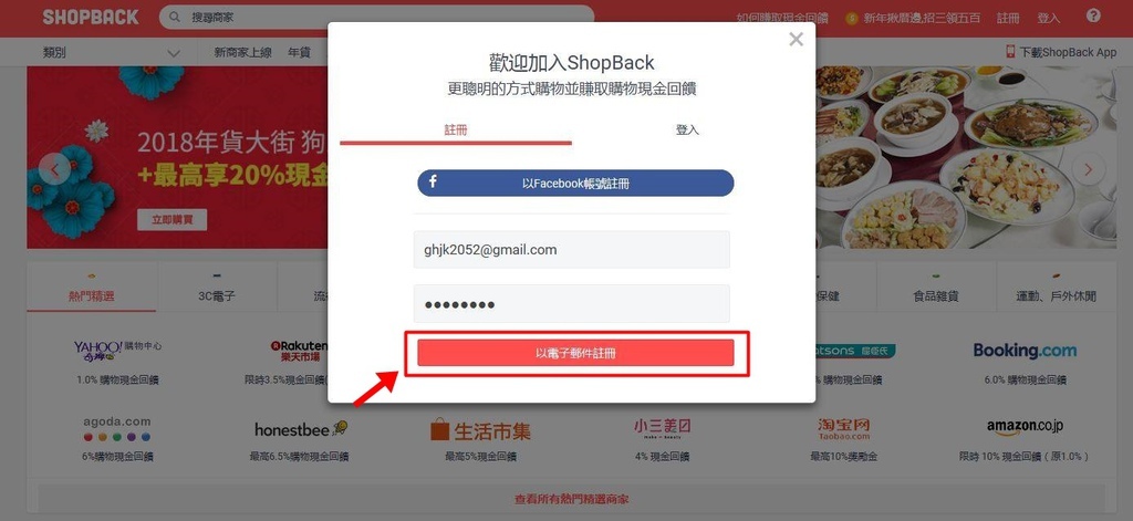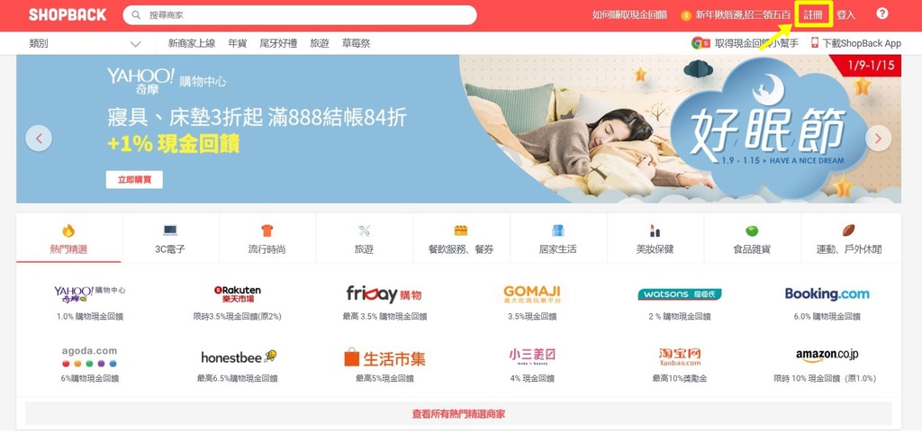 首先,在聰明消費拿回饋前,(1) 我們要進入 Shopback 註冊成為會員。