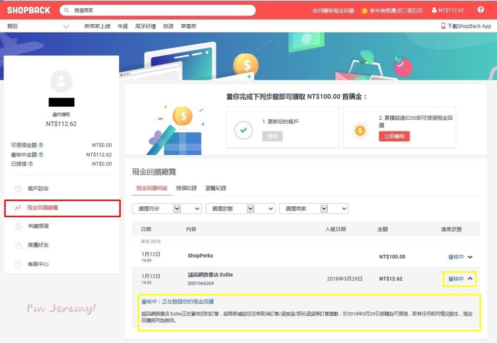 進入後,我們只能在同一個視窗進行所有消費,如果發生新增分頁、跳出網頁、過24小時下單...等的事情,是無法得到現金回饋的。