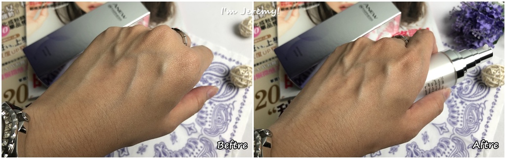 使用前後比較起來,手背上的紋路看起來沒那麼明顯外,皮膚也有點水感的感覺?