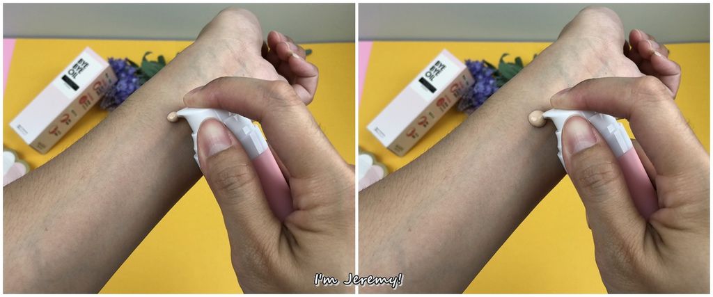 隨著抹勻,質地會漸漸從滑順轉為粉感,但別以為粉感會很難推唷,其實還是很好推der。