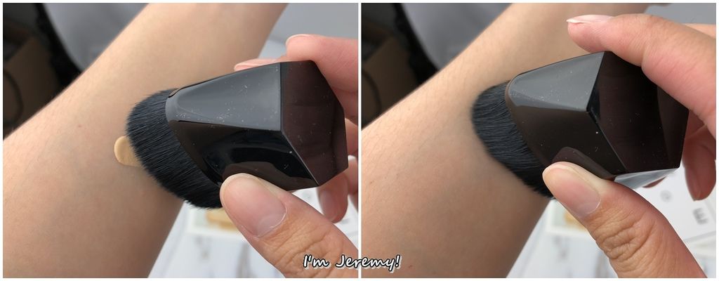 在推的同時,它那好推的質地感受非常明顯,因為只刷了幾下半邊臉底妝就完成了,