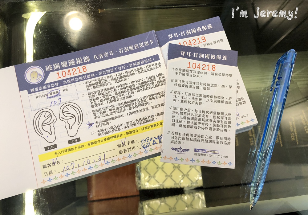 挑選好耳針後,服務人員會在須知卡上與妳在次確認施打的款式,無誤後,請簽上