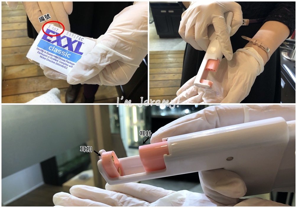 雙方確認好要施打的耳針款式後,服務人員會將耳針膠囊拆開裝到耳槍上,並告知耳針、耳扣的位置。