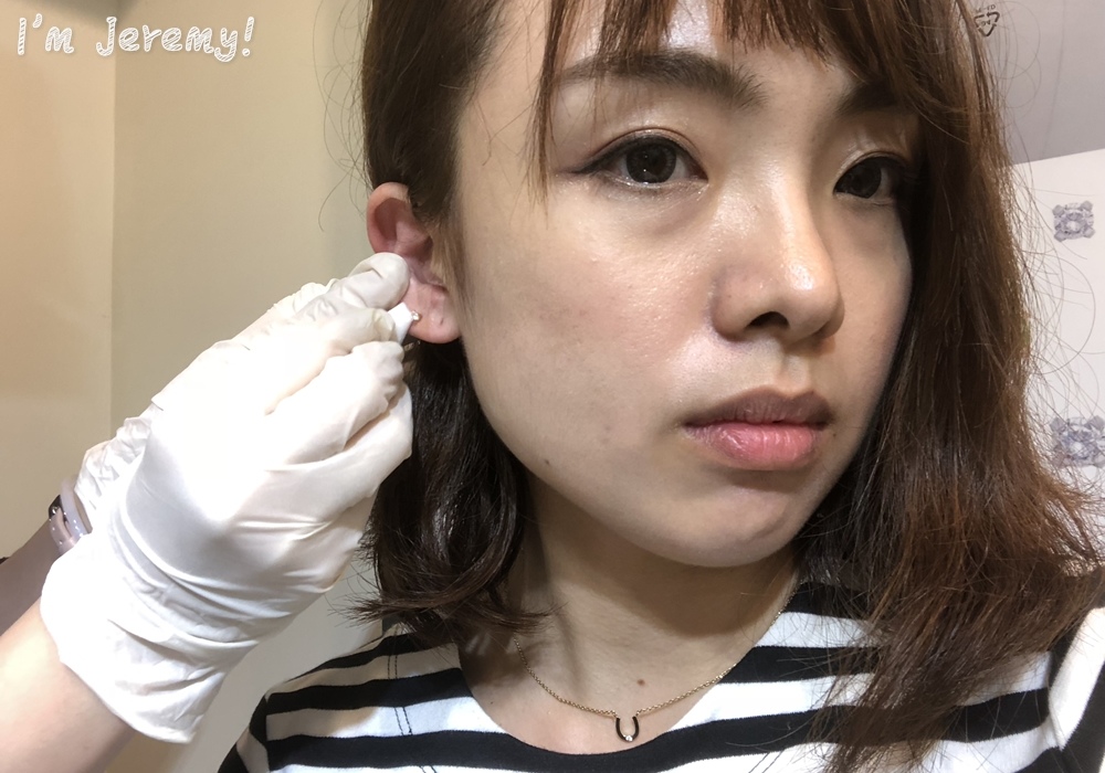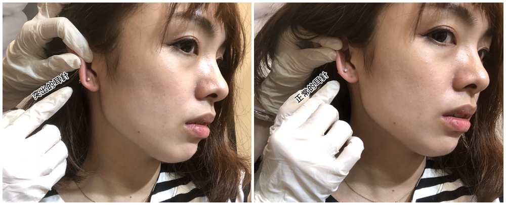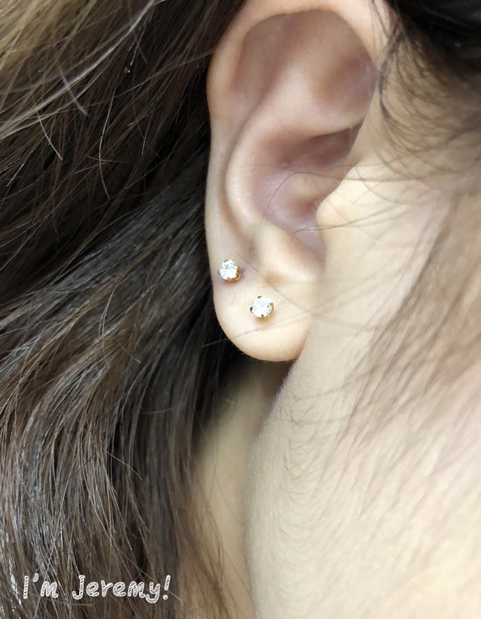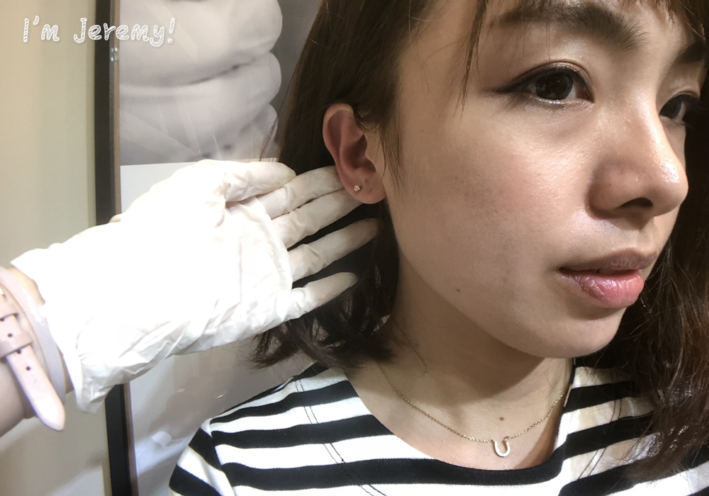 因為我是右耳再多一個耳洞的關係,所以她幫我2洞之間留有間距,方便我裝卸耳環。