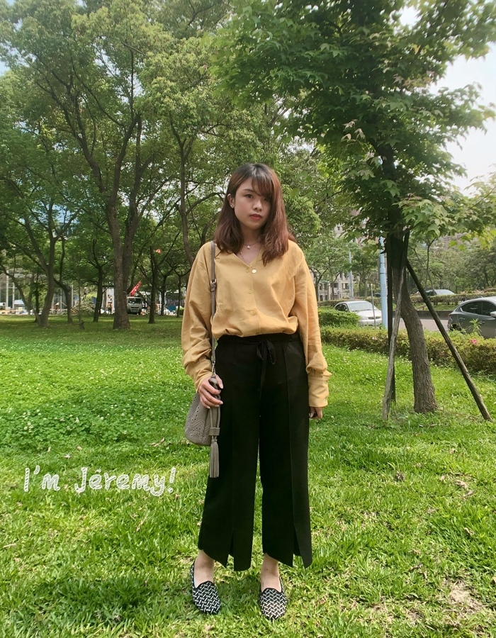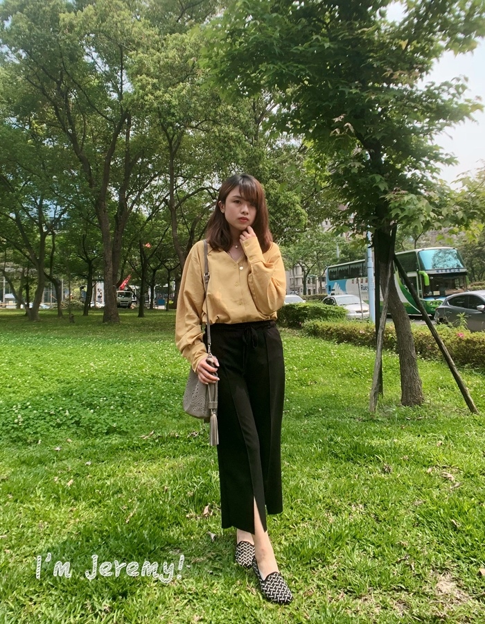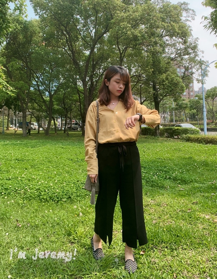 LOOK 1.開襟襯衫 x 黑色直筒褲