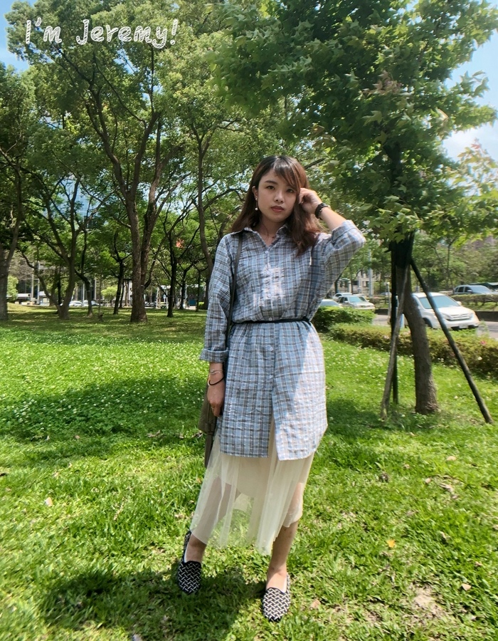如果不要那麼個性的話~~格紋衫與紗裙的甜美組合也是可以的唷!