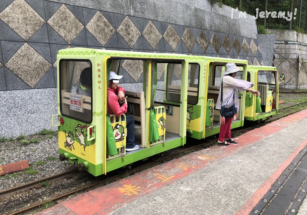 共有三節車廂的它,一次可乘載 9 位旅客 (車頭1位、車廂4位 x 2)