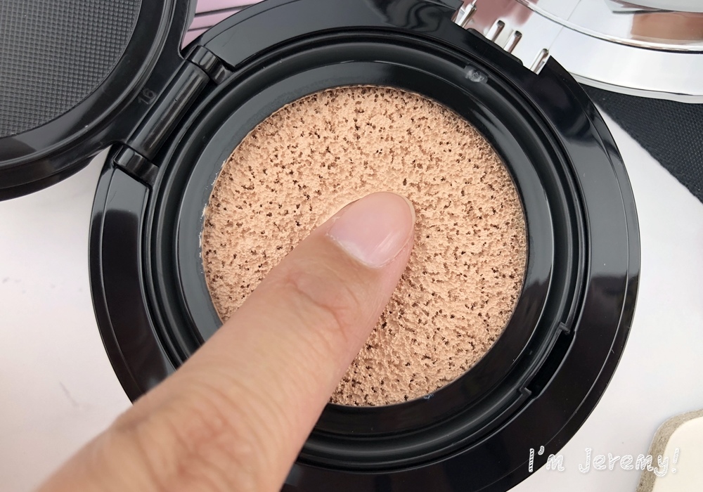 輕輕一壓 ~ 充滿氣孔的粉芯,指腹沾滿粉體的同時,也感受到粉芯傳來的Q彈力道。