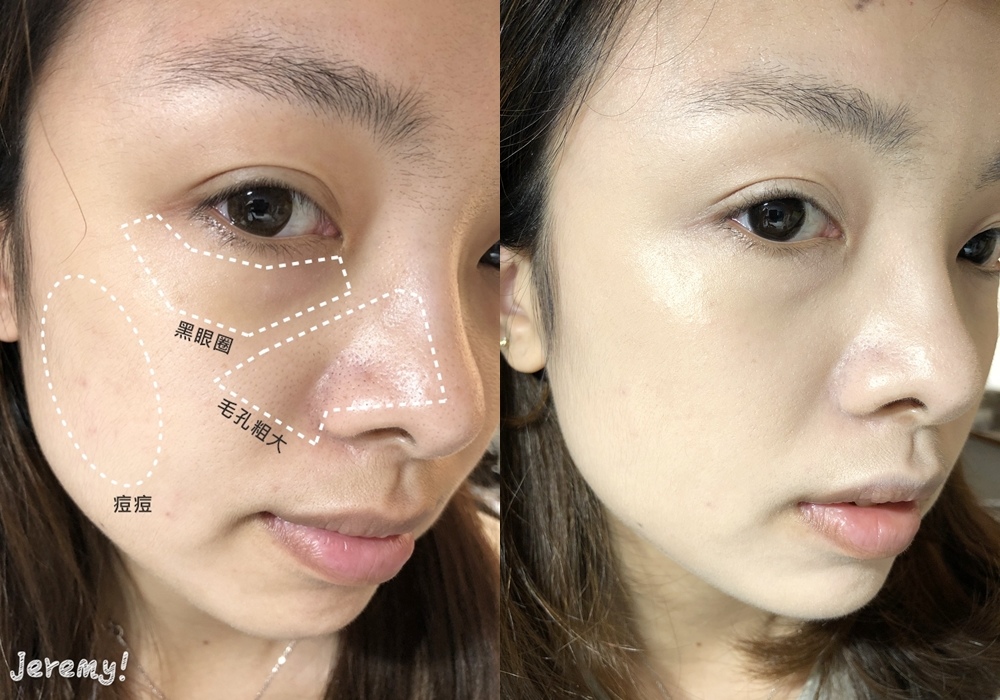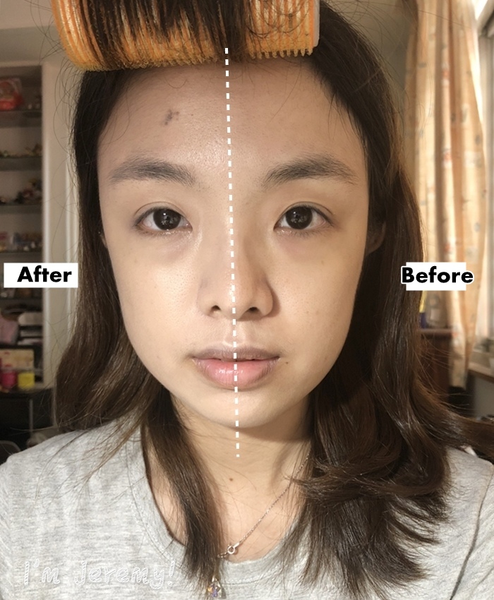 經過無瑕粉底洗禮過的半邊,肌色變得明亮外,感覺精神也回電不少!!