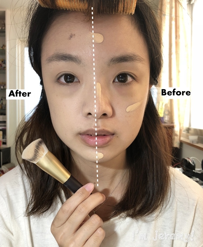 抹勻後,粉底會從扎實 → 輕薄,且不忘遮瑕,