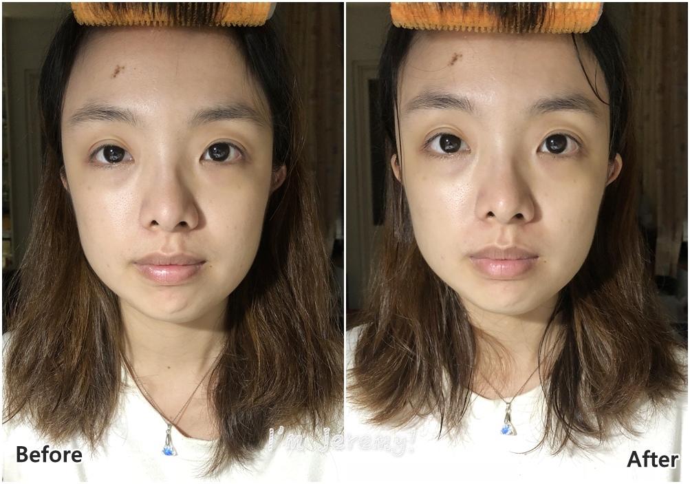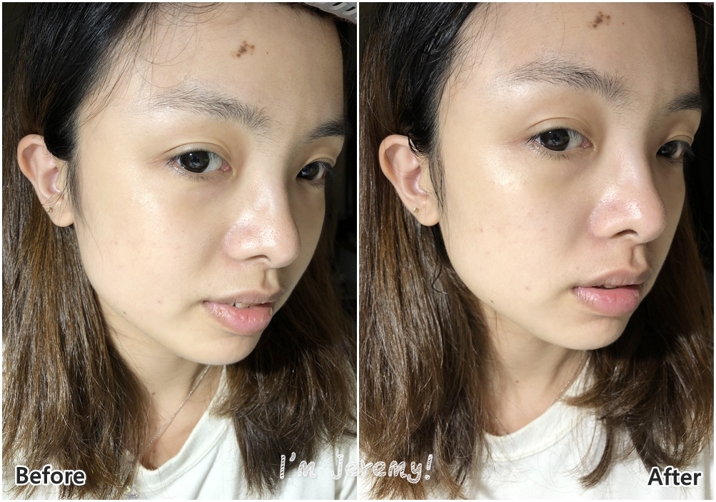 先前面膜的緊繃感,也隨之不見,留下看起來細緻的肌膚紋理。