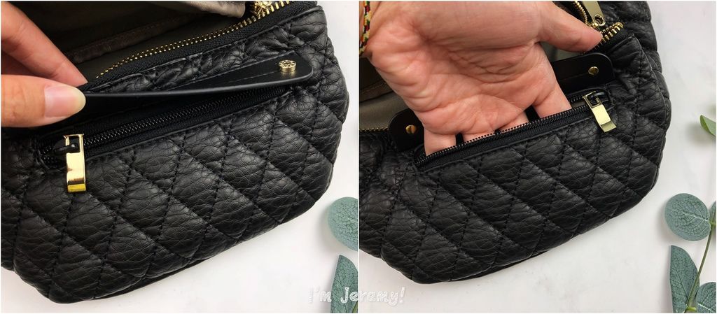 1.前袋 - 深度約我手指長,稍淺的內裝空間,很適合放卡片、髮圈...等扁身小物。