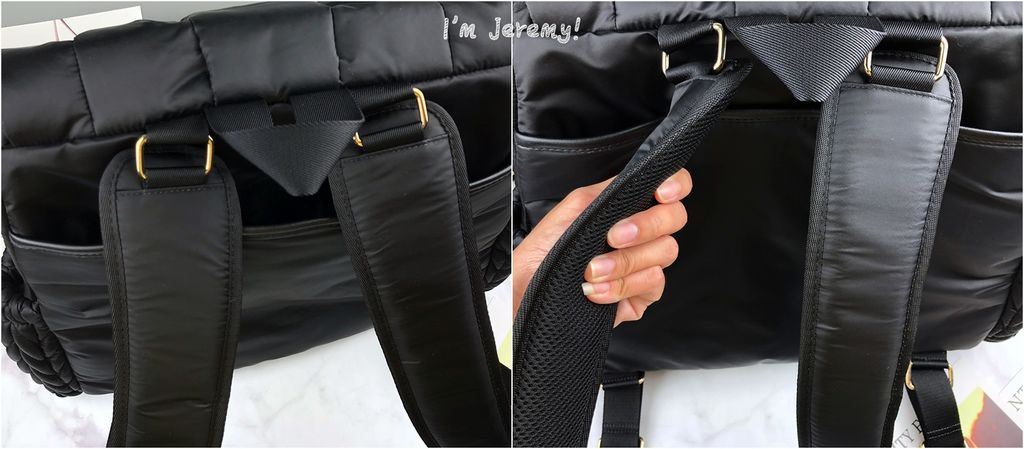 襯墊肩帶的設計,厚度分散平衡了包包重量,使我整天背起來沒太多壓迫 / 痠痛感。