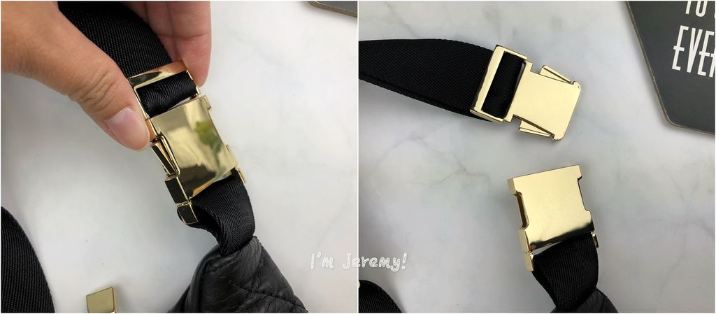 尼龍 x 金色五金 製成的調節背帶,質感摸起來滑順,不粗糙 ![]()