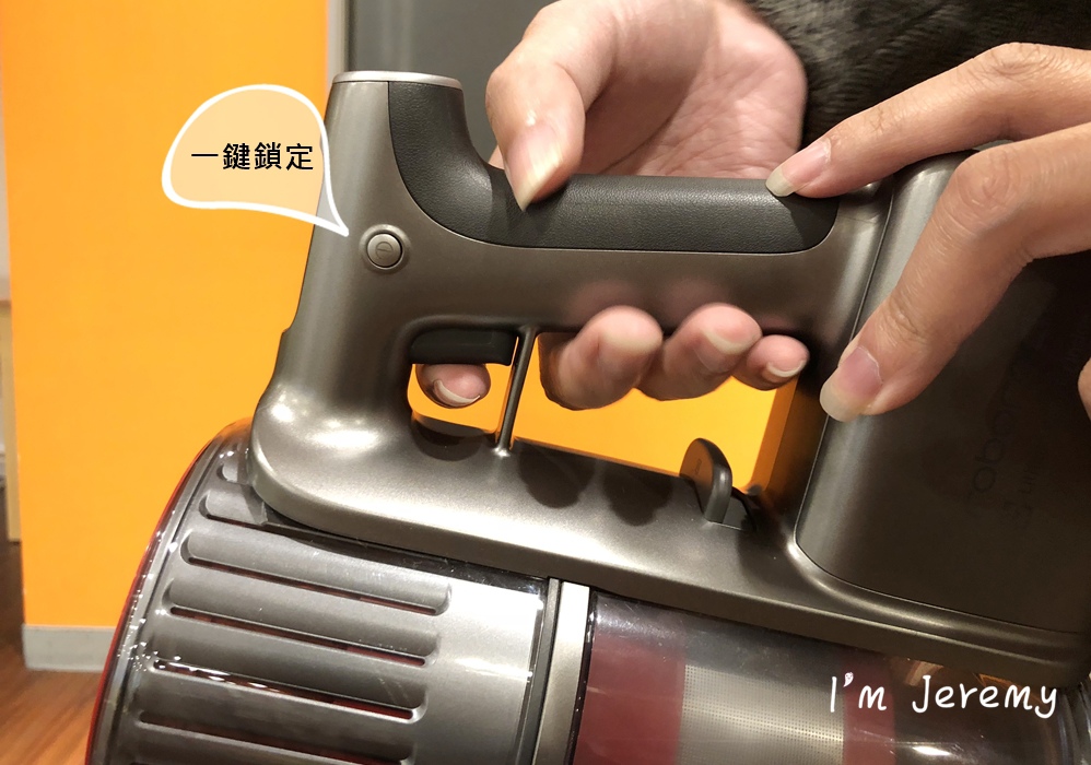 有用過它牌無線吸塵器的人,應該都有手指按到起笑的經驗 (笑) 尤其時大掃除時,那種從 "嗯,還可以" 變成 "快幫我手指貼貼布" 的感覺,簡直令我跟爸爸難忘!所以當知道H6有一鍵鎖定功能時,我們內心瞬間感覺 "以後打掃應該輕鬆不少"