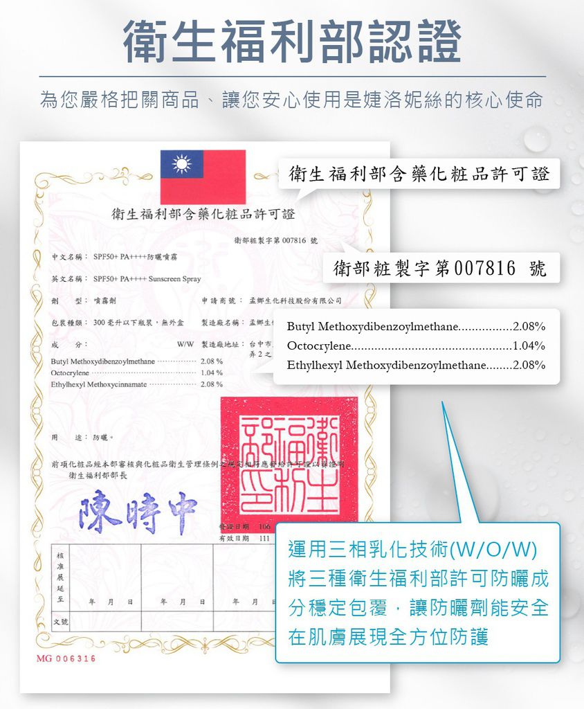 而且倫家有經過衛生福利部含藥化粧品認證唷!用起來好放心 ^^ 大家可以安心購買!