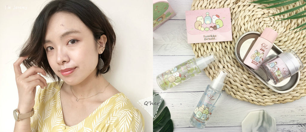 天啊!!萌萌噠的 角落小夥伴 登入 Q'her 了 ~ 此舉可說是台灣首創合作呦,小夥伴們分別藏入了防曬乳、素顏霜、香氛噴霧、吸油面紙中,來陪伴我們度過生活中每一天、每個角落,包裝粉嫩的設計加上「夏天」清新元素,看久 ~ ~ 心靈都被森森癒療一番啦