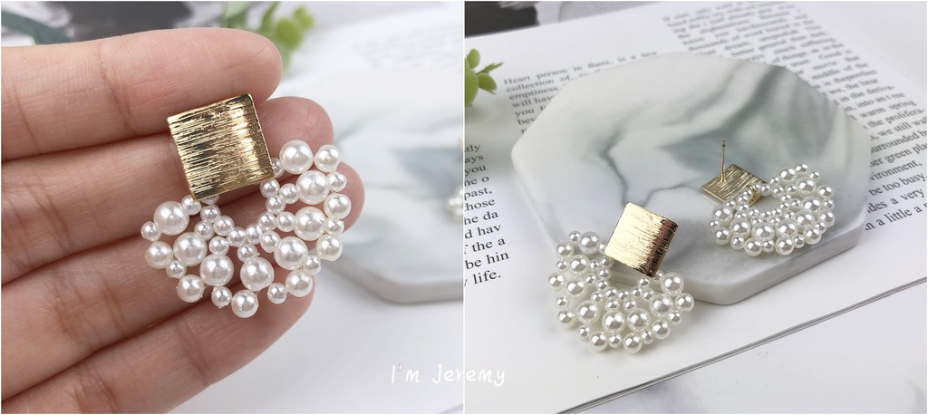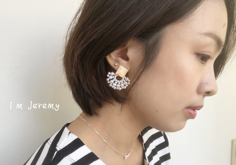 戴上後,不用擔心珍珠 + 金屬片組合對耳朵太重,它只是大面積看起來份量感十足而已 (笑) 其實戴起來蠻輕的。