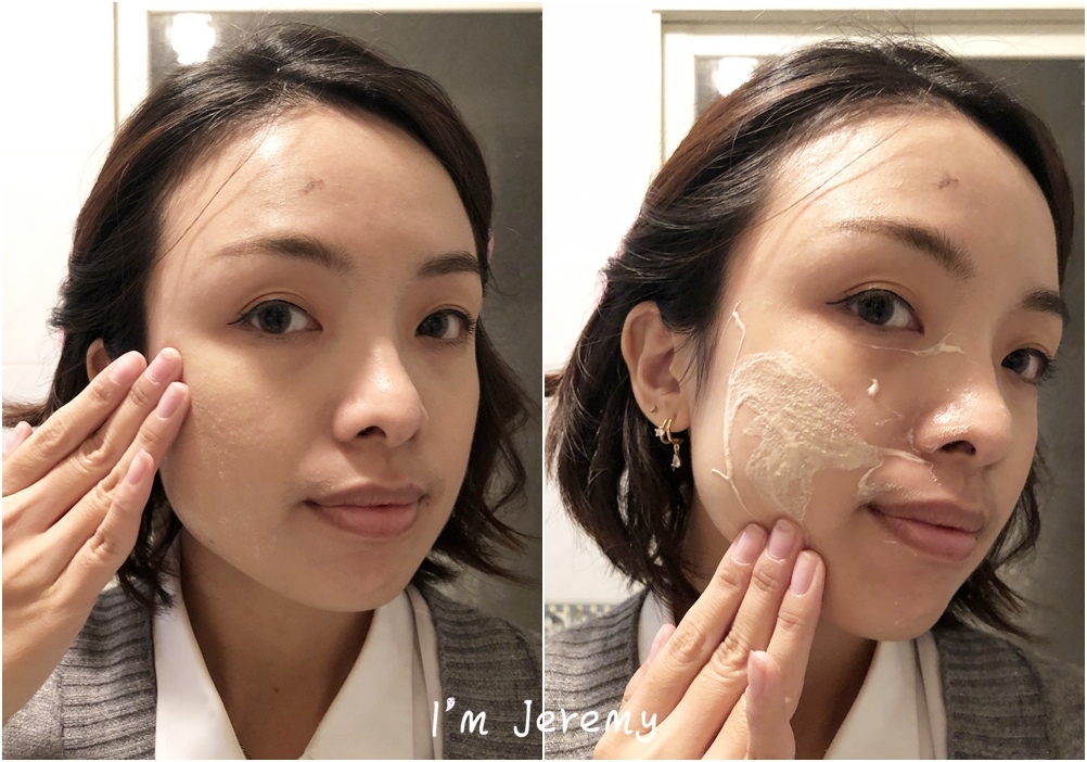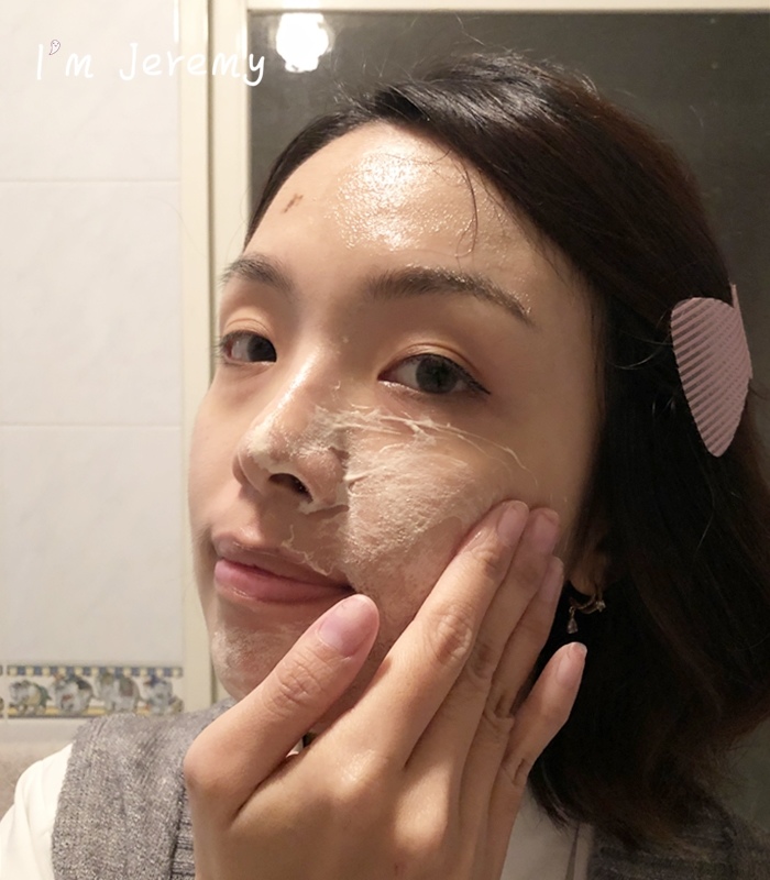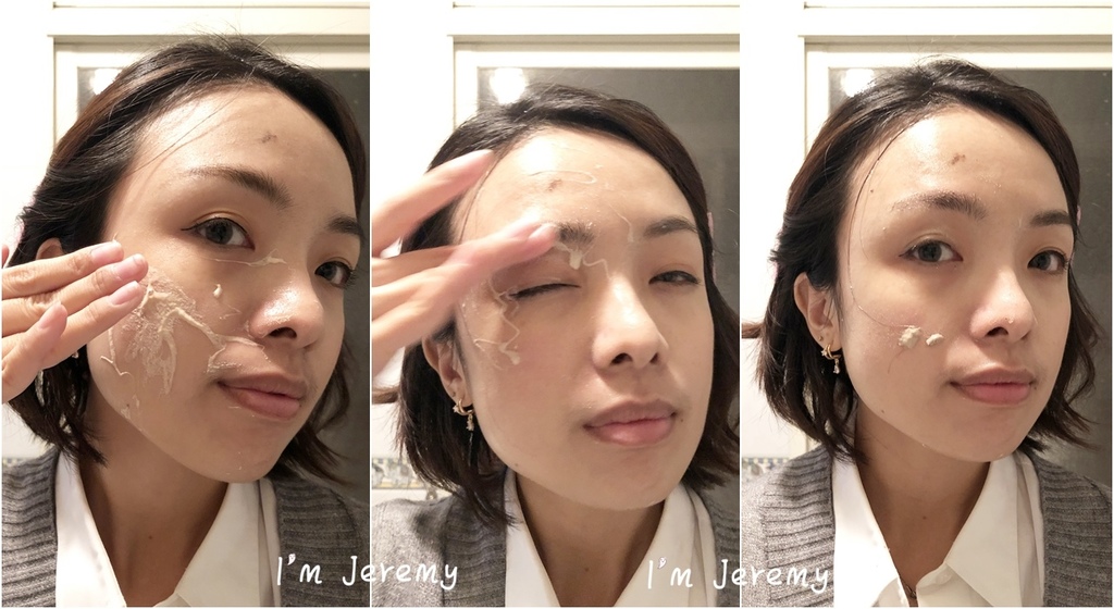 揉著揉著,不知不覺就把半邊臉上的彩妝給卸除了,省去了眼唇卸妝的步驟,好快速!!