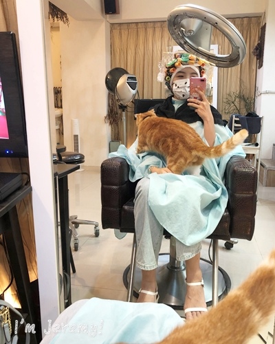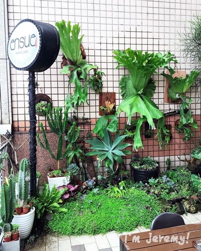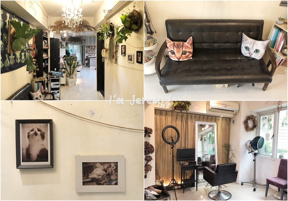 沿著階梯而上,來到位於 2 樓的 ensue4 吧!踏入,眼簾即是滿滿的植物與貓咪擺飾,相較一般以鏡子為主的髮廊空間下,顯得溫馨、親人,也說明了店主們喜愛的事物與店內第二位店長們?的地位(咦)。