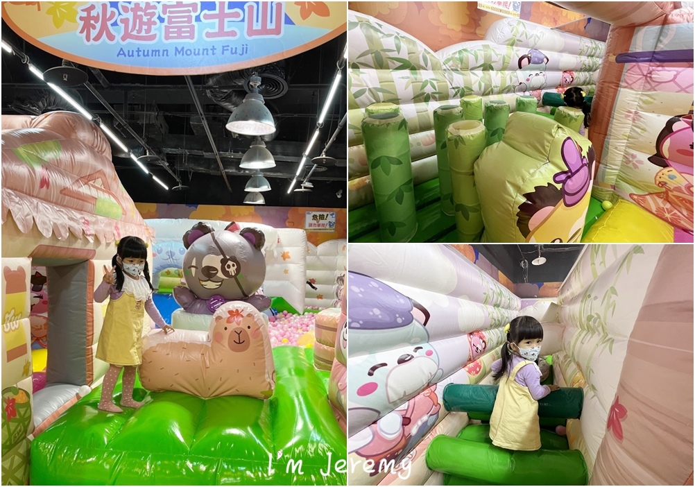 ↑ 秋遊富士山 是館內新增設的區域。將具有日本象徵的富士山、水豚先生、竹取物語結合在一起,成為大型氣墊遊戲場。入口處,水豚先生正趴著等待小朋友們的光臨,左手邊進入竹取物語故事屋中,挑戰由輝夜姬設下的小關卡吧!剛開始 いぬ醬 還翻不太過去,經過幾次練習後,逐漸熟能生巧 ~ 輕鬆一翻爬就過去了。