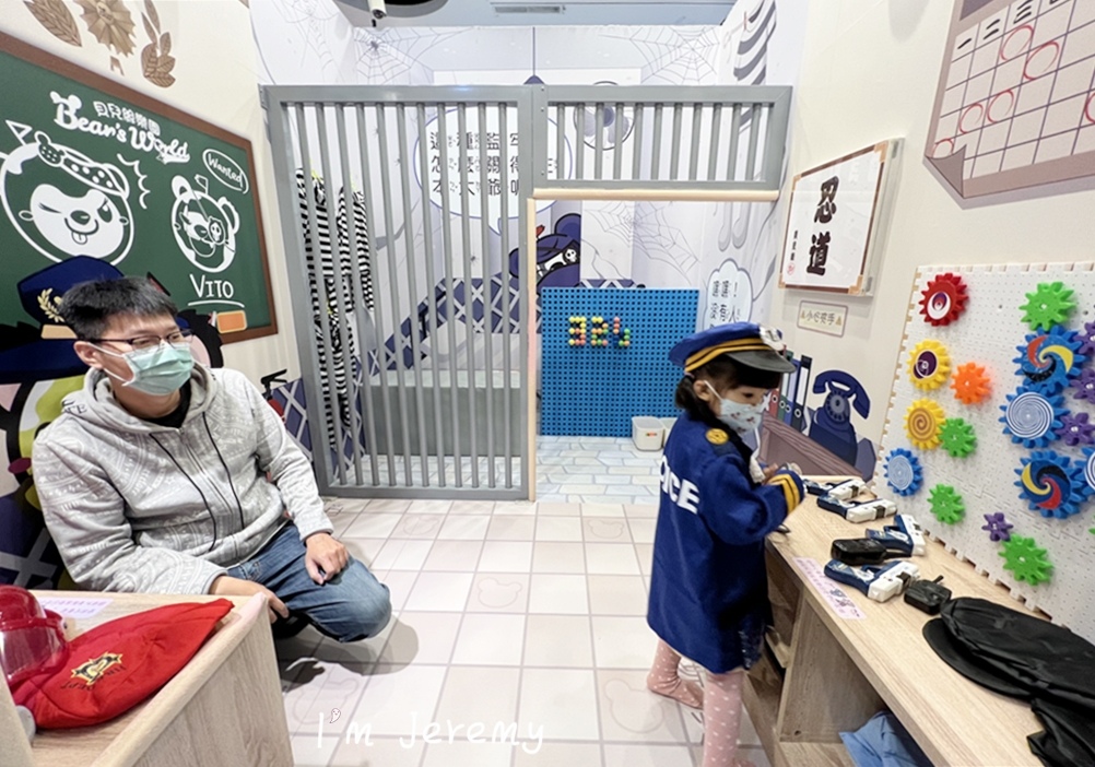 ↑ 忍道派出所(角色扮演遊戲區)。將自身所學忍術聯合警察打擊犯罪吧!小朋友們可在這穿上警察或消防員的衣服、裝配上標準配備,出勤執行任務啦!小心,後方監牢的犯人們別讓他們逃走了!