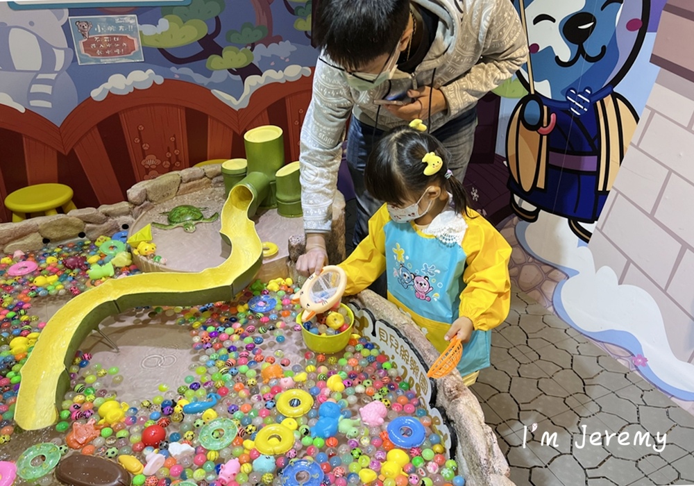 水面上不只漂浮繽紛小球,還有動物像膠小玩偶、小游泳圈…等小物件。飄散在四處的小玩具們,要如撈在一起呢?考驗著小朋友們的手眼協調力。大朋友在一旁也能拿著網子加入撈玩具行列喔!いぬ醬:我們來比賽 ~