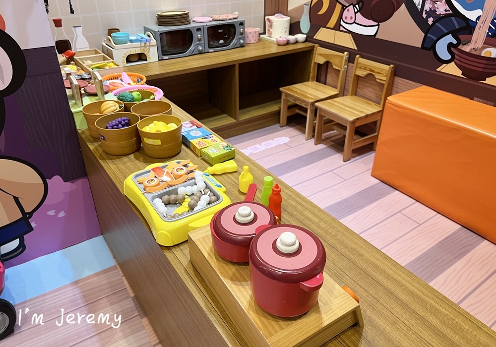 ↑大胃王拉麵(角色版演遊戲區)。Hi 請問你要點什麼口味的拉麵呢?檯面上多樣、豐富的食材,絕對能讓小老闆們滿足顧客的需求。而且,牆面上還掛有廚師服可以更換喔!超專業~いぬ醬:今天要烤什麼呢?