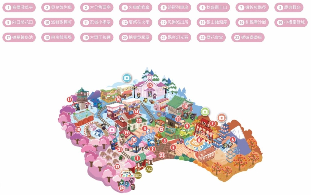 ↑夏祭火花街(餐車區)。還記得日劇&動畫裡大家穿上浴衣前往神社參加慶典的畫面,貝兒絲設置了6座擁有美食、遊戲的攤車,配上繽紛燦爛的煙花,邀請大小朋友們一同遊玩慶典,重點是 ~ 這裡不會打烊喔!